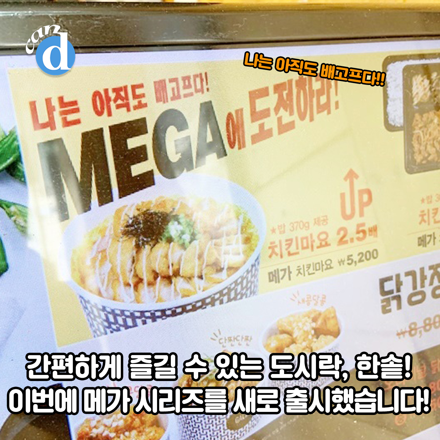 이번에 새롭게 선보이는 메뉴는 치킨마요 양이 2.5배 많아진 '메가치킨마요'라고 합니다.