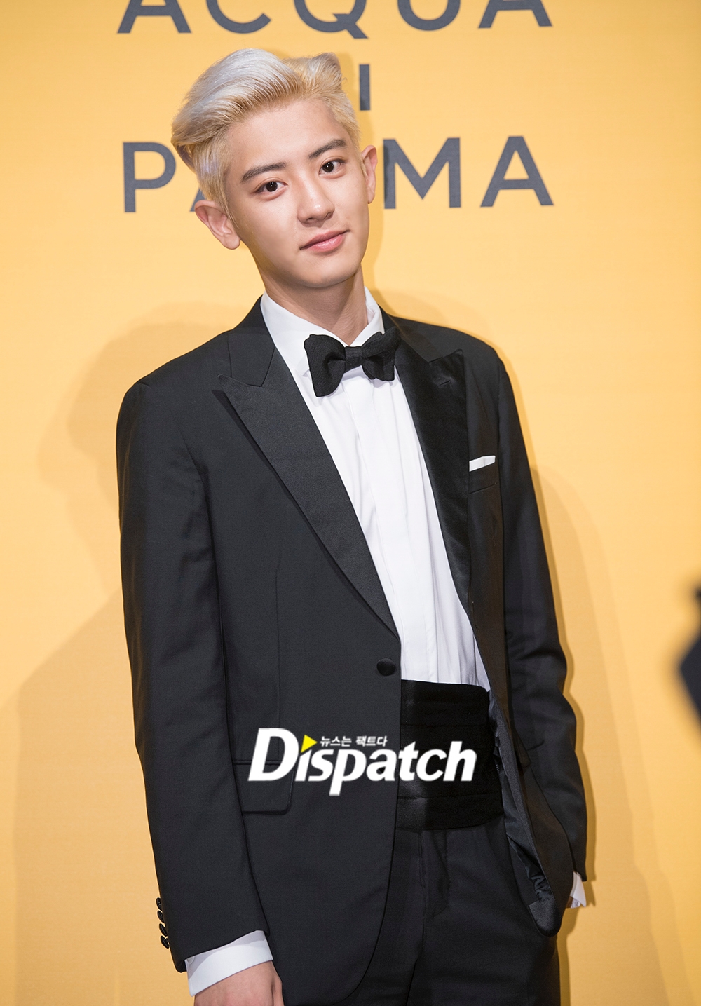 훈훈한 수트 패션도 돋보였다. 여기에 나비 모양 보타이를 매치, 클래식한 스타일을 완성했다. 파격 금발 헤어는 순정만화 속 왕자님 같았다.