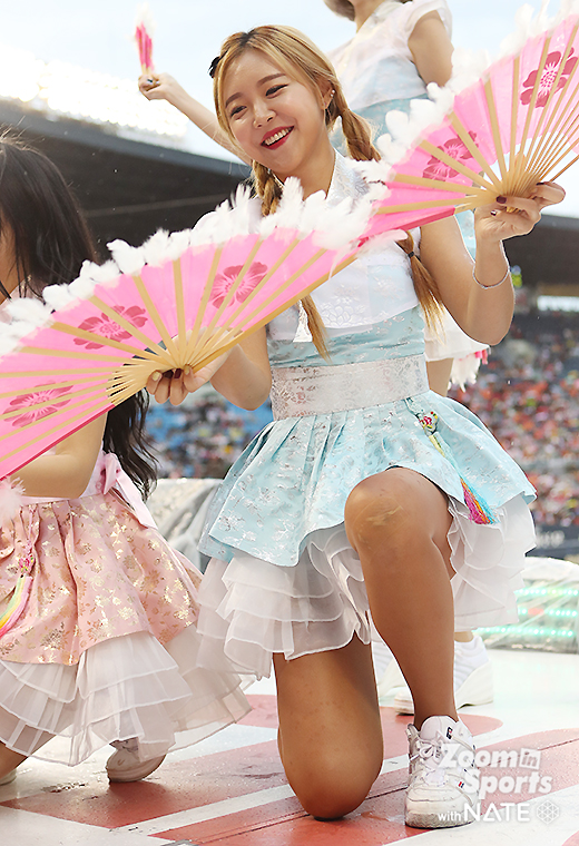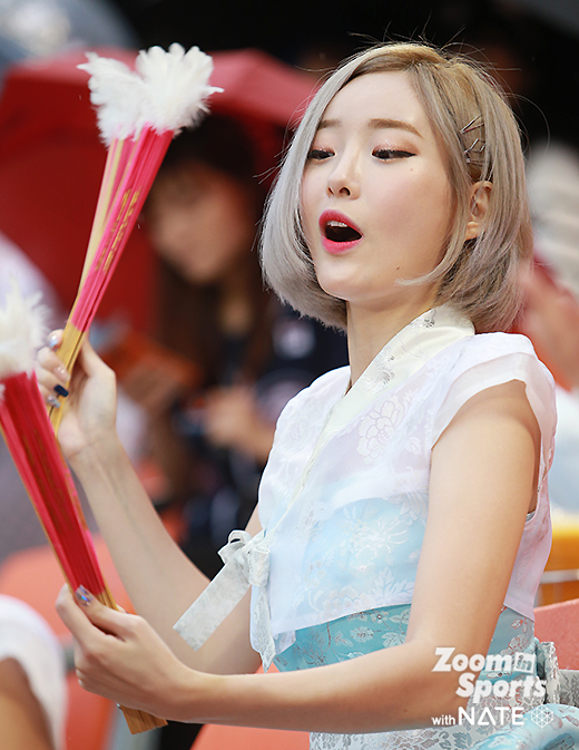 12일 오후, 잠실에서 펼쳐진 두산과 KIA전, 두산 치어리더 박소진, 이나경, 서현숙, 천온유의 추석맞이 특별공연 '달타령'이었다. 추석인 오늘(13일) 저녁, 보기 드물게 크고 밝은 달이 떠오른다고 한다. 그 달은 '아마' 서현숙의 '님 그리워 뜨는 달'이 아닐까. 도저히 미워할 수 없는 '쑤기' 서현숙이었다!