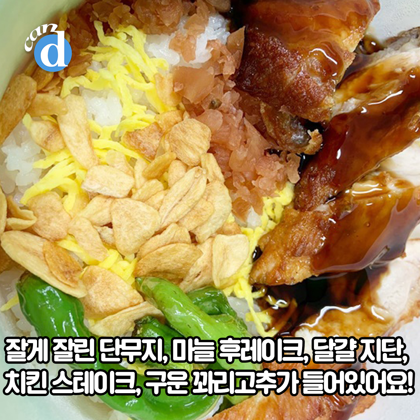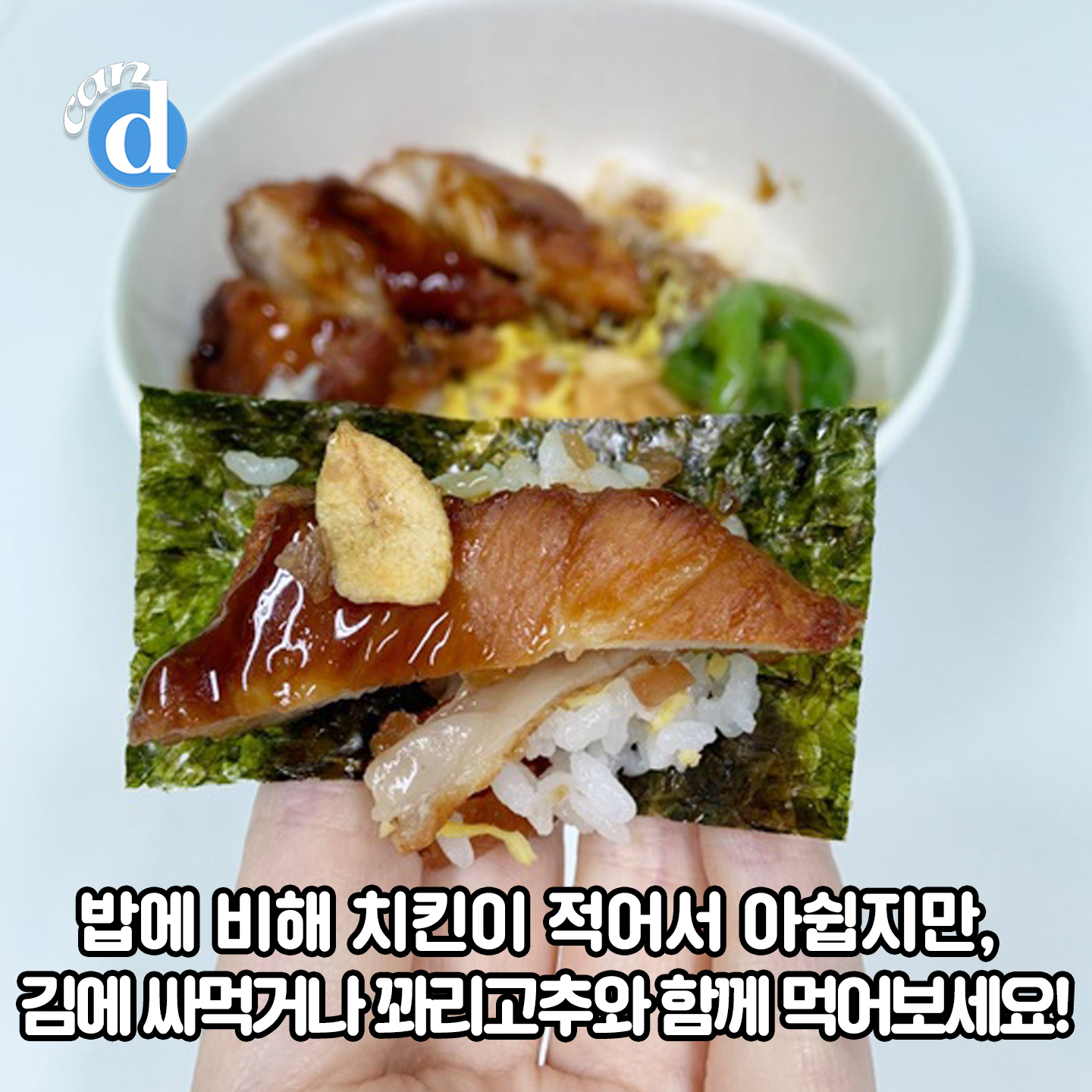 밥 양에 비해 적은 치킨은 아쉬웠는데요. 김에 싸먹거나 반찬으로 나오는 꽈리고추와 함께 먹으니 끝까지 맛있게 먹을 수 있었습니다.
