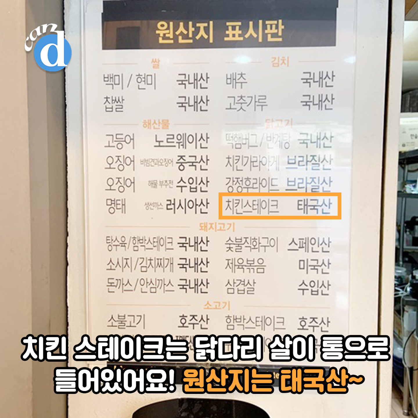 통 닭다리살이 통으로 들어간 도시락이라고 합니다. 사용한 닭의 원산지는 태국산.