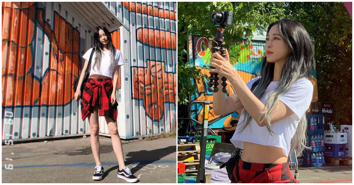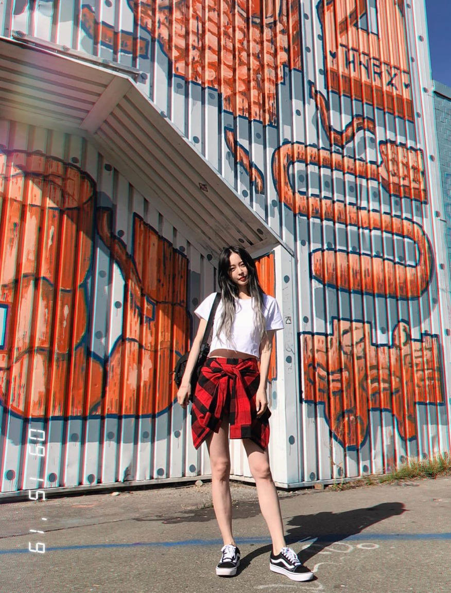 개미 허리가 돋보였습니다. 한예슬은 화이트 크롭티에 체크 하의로 탄탄한 바디라인을 뽐냈습니다. 잘 다져진 복근도 시선을 강탈했습니다.