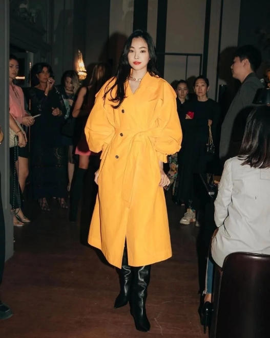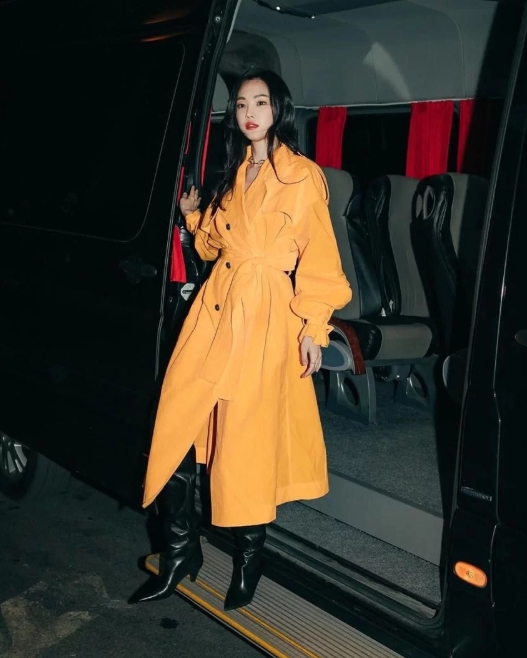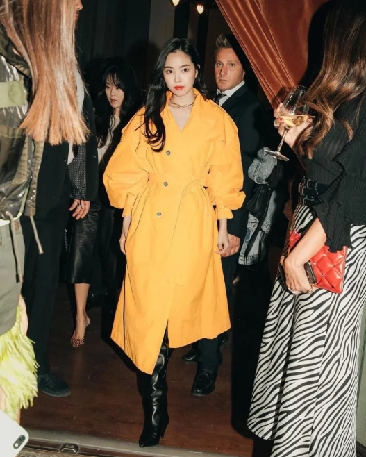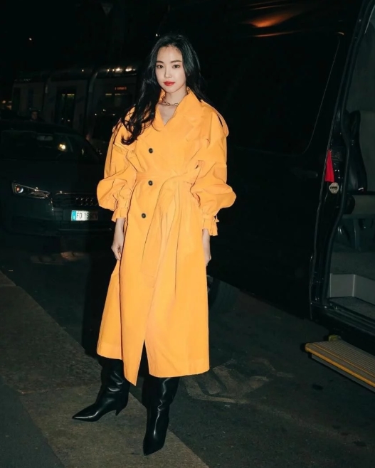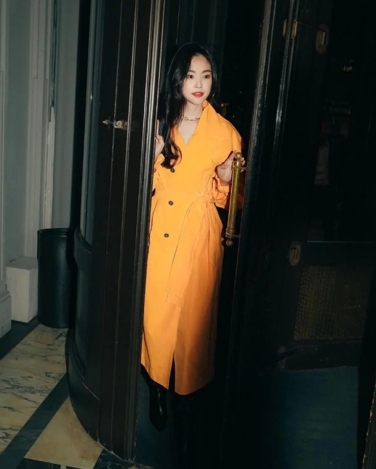 이날 손나은은 오렌지색 트렌치코트를 입고 등장해 시선을 강탈했는데요.