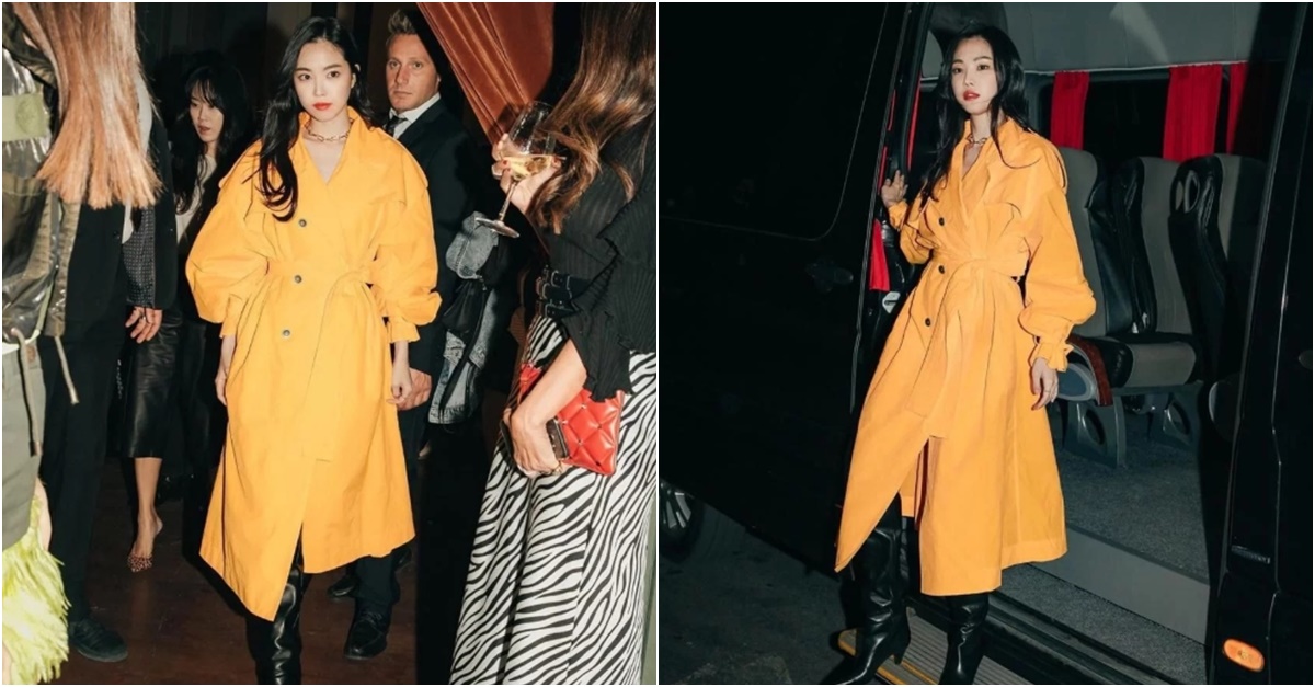 밀라노서 오렌지색 트렌치코트 입고 모델 포스 풍긴 손나은