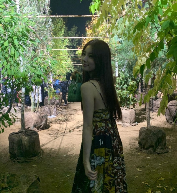 수지는 숲속의 요정 같은 모습으로 시선을 모았습니다.