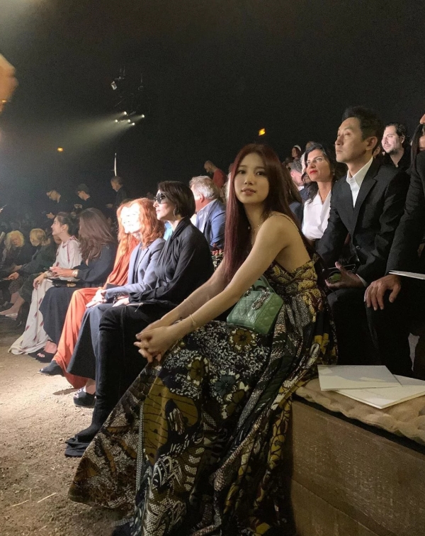 공개된 사진에는 패션쇼장에 앉아 쇼가 시작하기를 기다리는 수지의 모습이 담겼는데요.