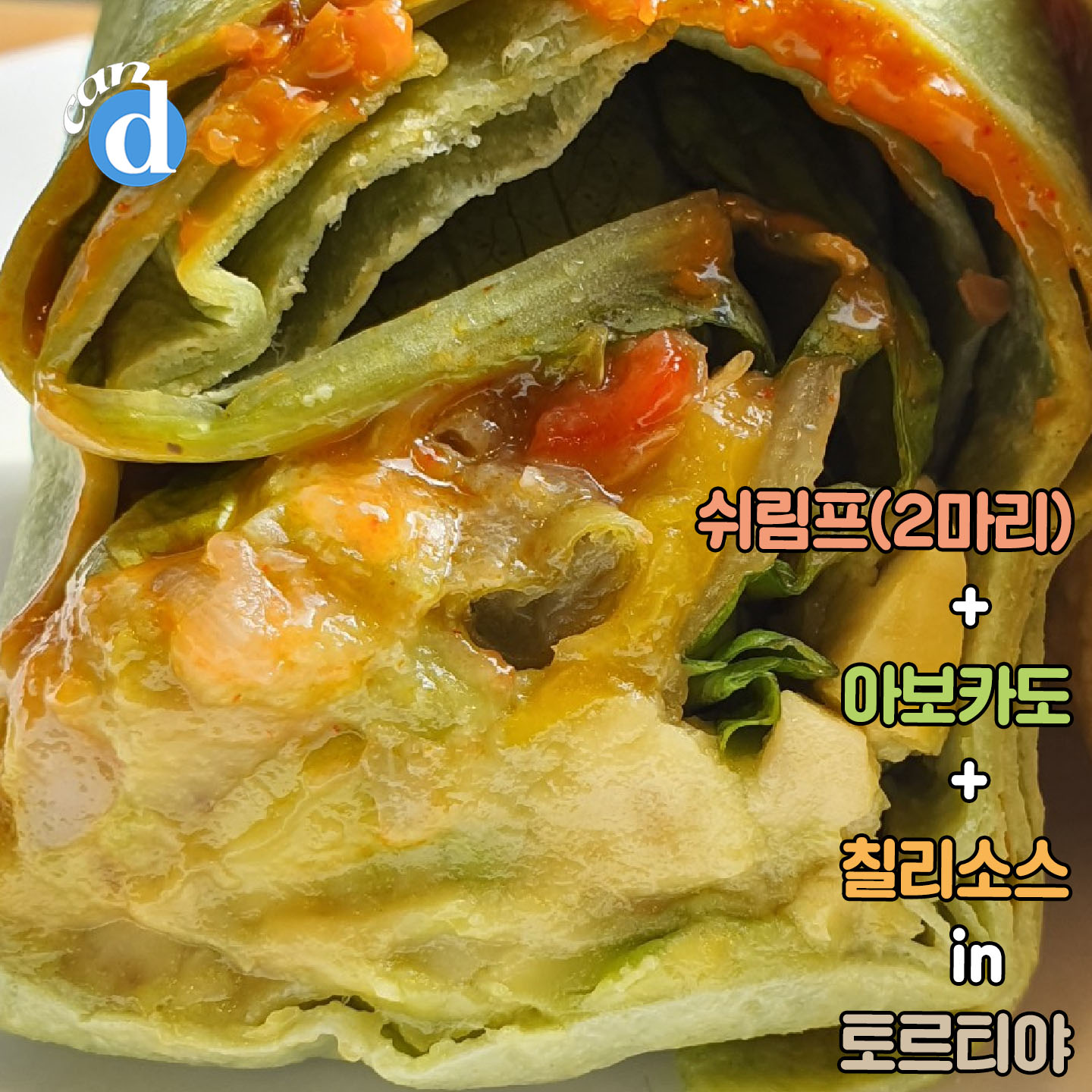 하지만 맛은 훌륭해요. 칠리소스에 버무려진 쉬림프, 부드러운 아보카도와 각종 채소.
