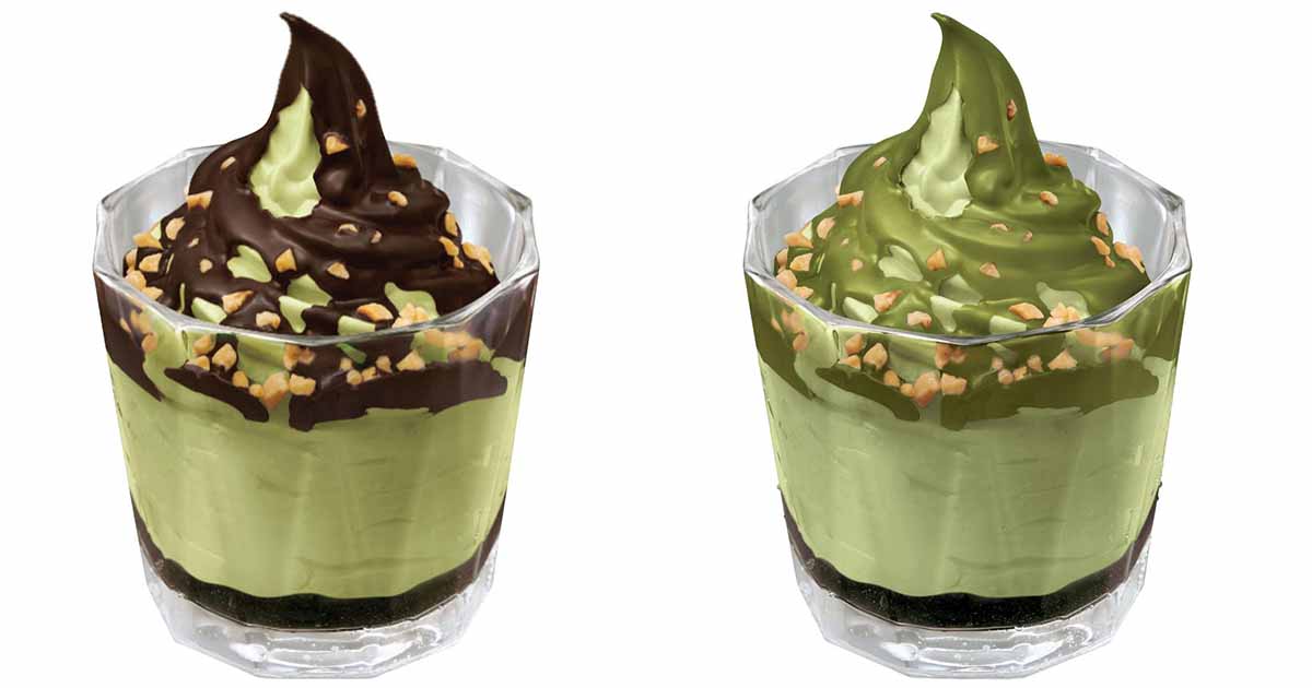 이번 신제품은 말차 시리즈입니다. 일본 아이치현 니시오 지역의 말차 가루로 만든 아이스크림을 출시했는데요. 진한 말차의 맛을 느낄 수 있습니다. 아이스크림 위에 말차나 초콜릿 시럽을 선택할 수 있는데요. 견과류도 뿌려져 완벽한 달달함과 쌉싸름함의 조화를 이루죠.