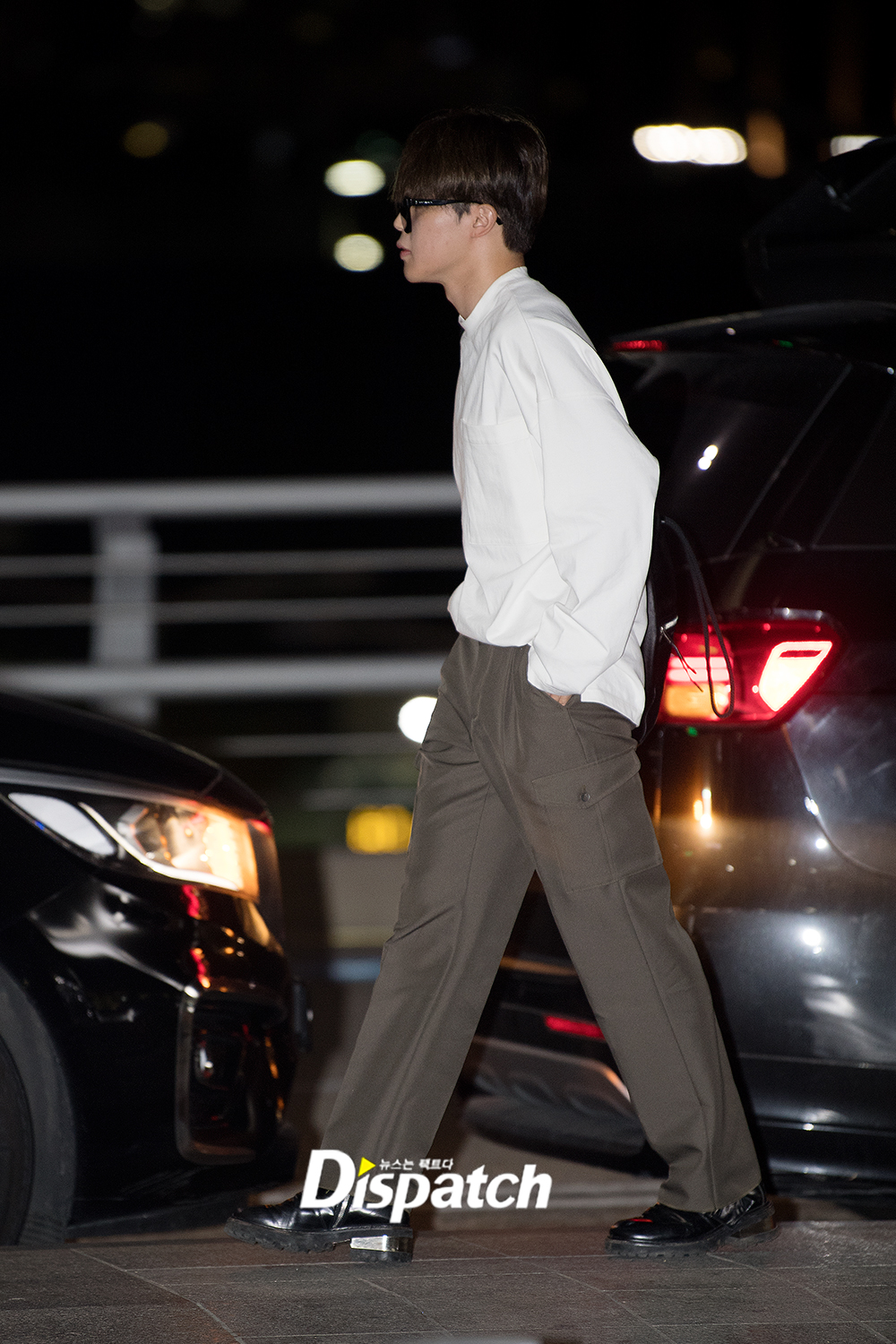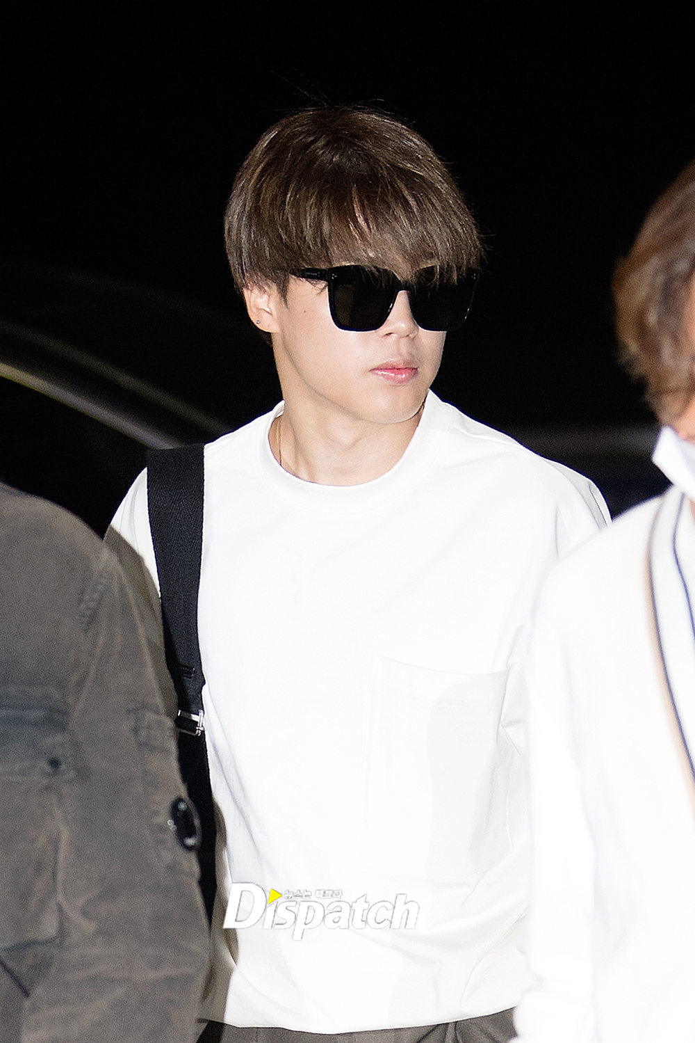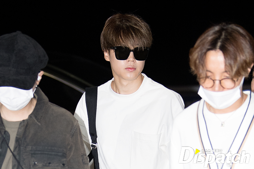 '방탄소년단' 지민은 이날 카키 슬렉스에 흰 티셔츠로 시크한 공항패션을 연출했다. 남다른 분위기는 물론 우월한 비주얼도 돋보였다.