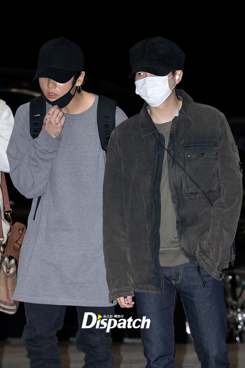 '방탄소년단' 슈가는 이날 청바지에 재킷으로 시크한 공항패션을 연출했다. 마스크와 모자로 얼굴을 가렸지만 카리스마 넘치는 비주얼이 돋보였다.