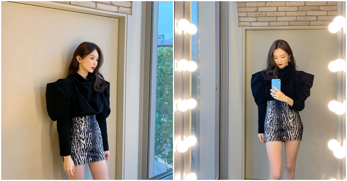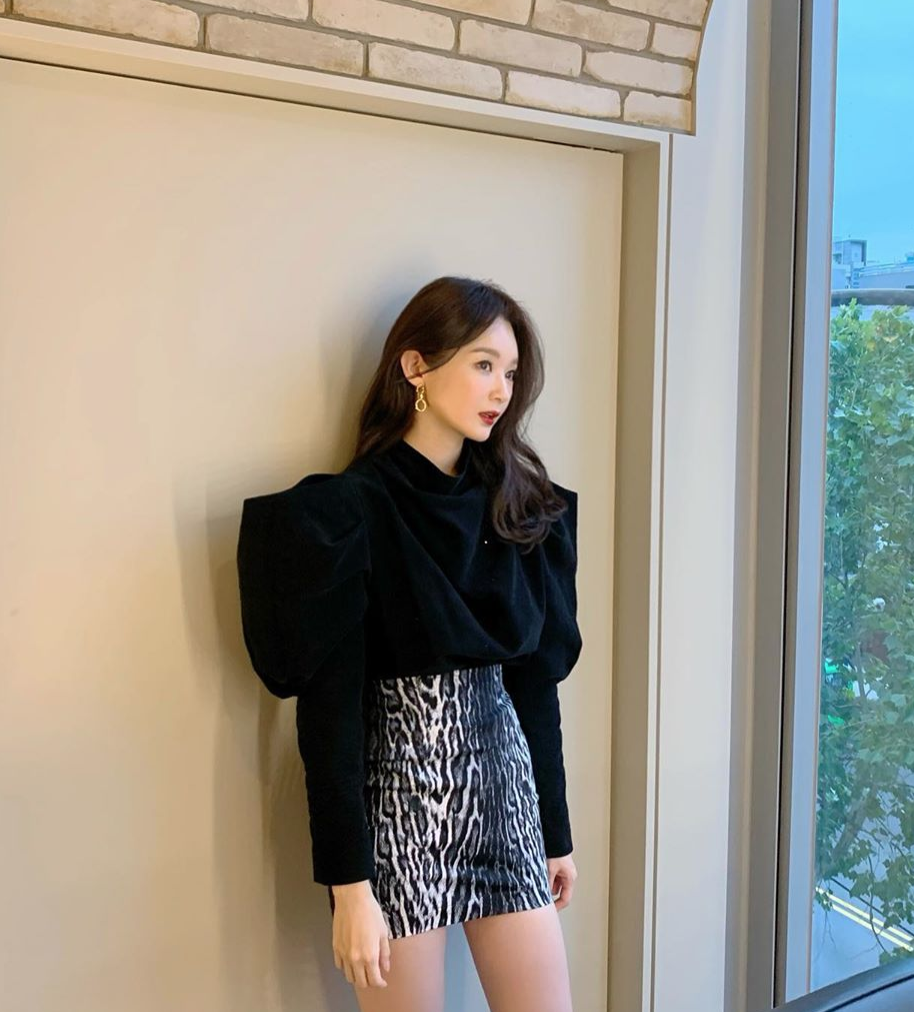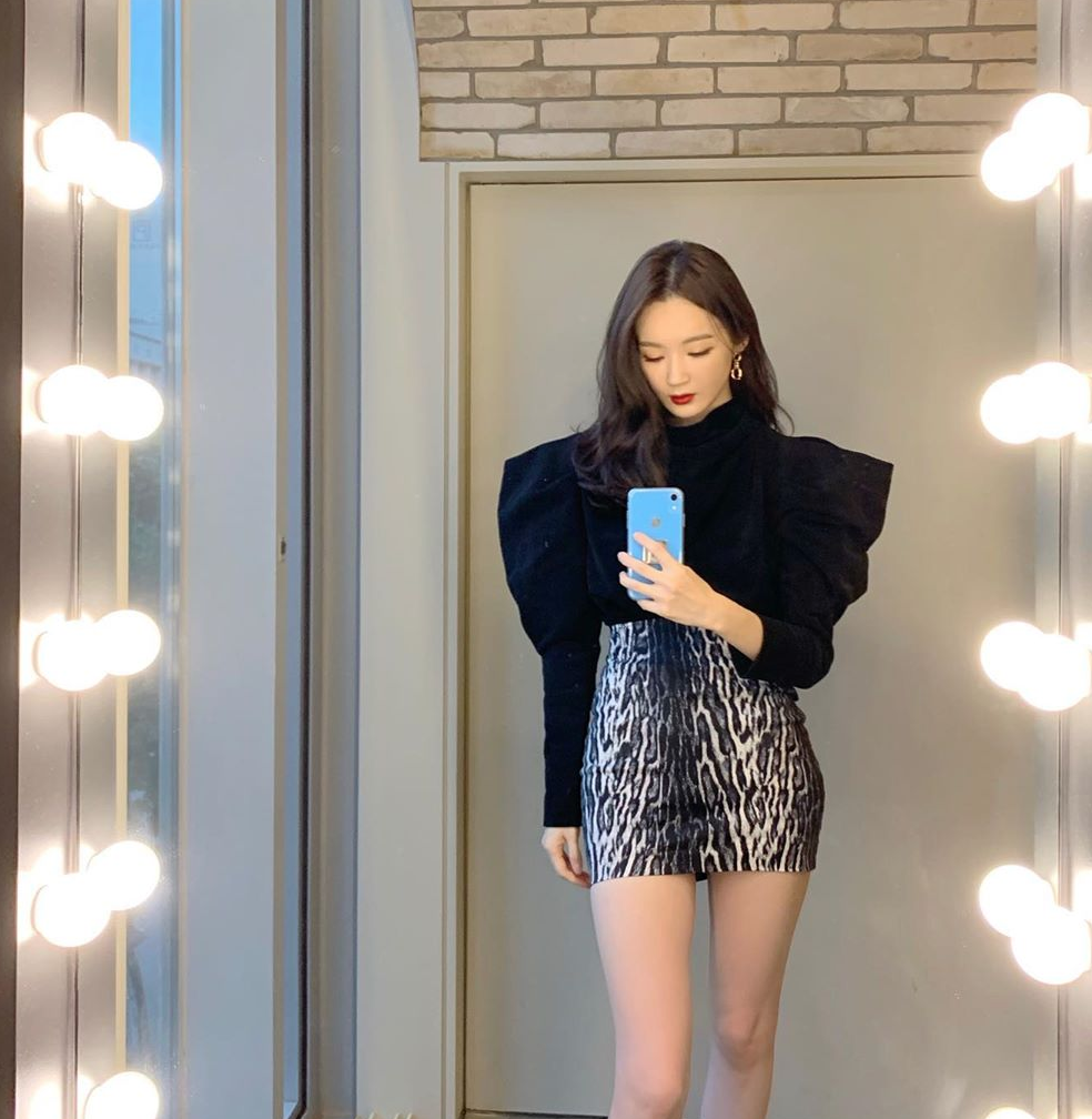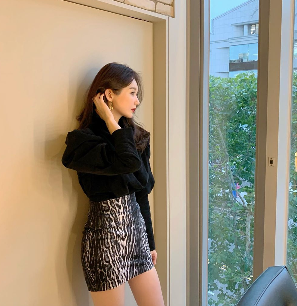 역대급 미모를 뽐냈습니다. 사진 속 강민경은 프릴이 돋보이는 블랙 상의에 호피 무늬 스커트를 매치했는데요. 가느다란 허리선과 긴 각선미가 돋보였습니다.