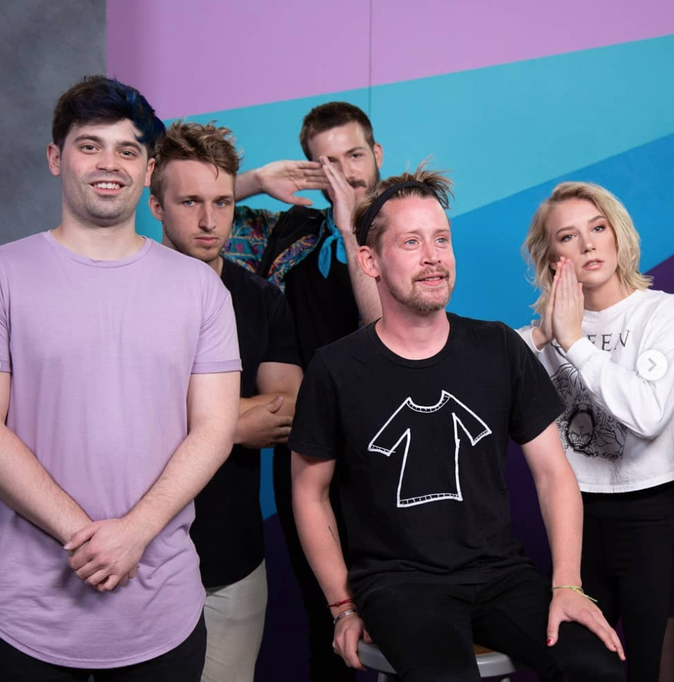 맥컬리 컬킨은 지인들과 함께 유튜브 녹화를 진행 중이었습니다. 스튜디오에서 즐겁게 지인들과 기념 사진을 찍었는데요.