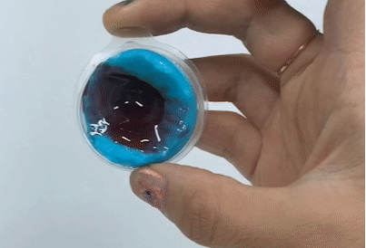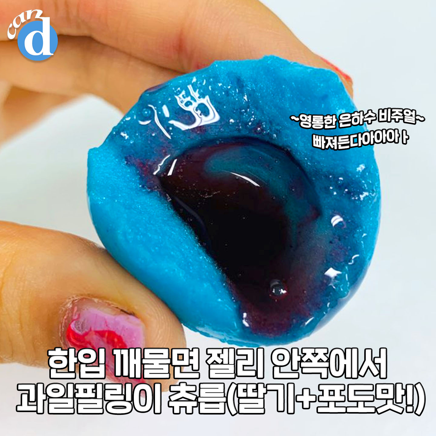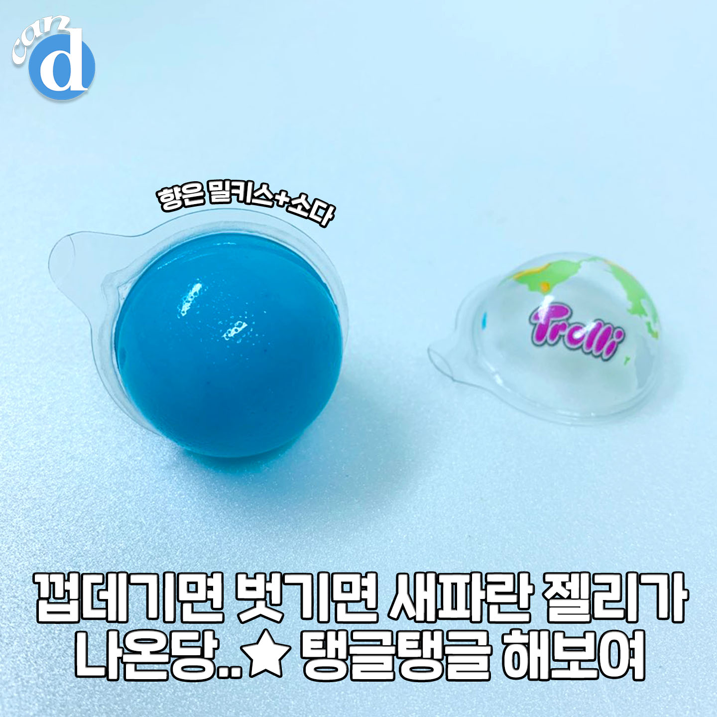 껍데기를 벗기면 새파란 젤리가 나옵니다.