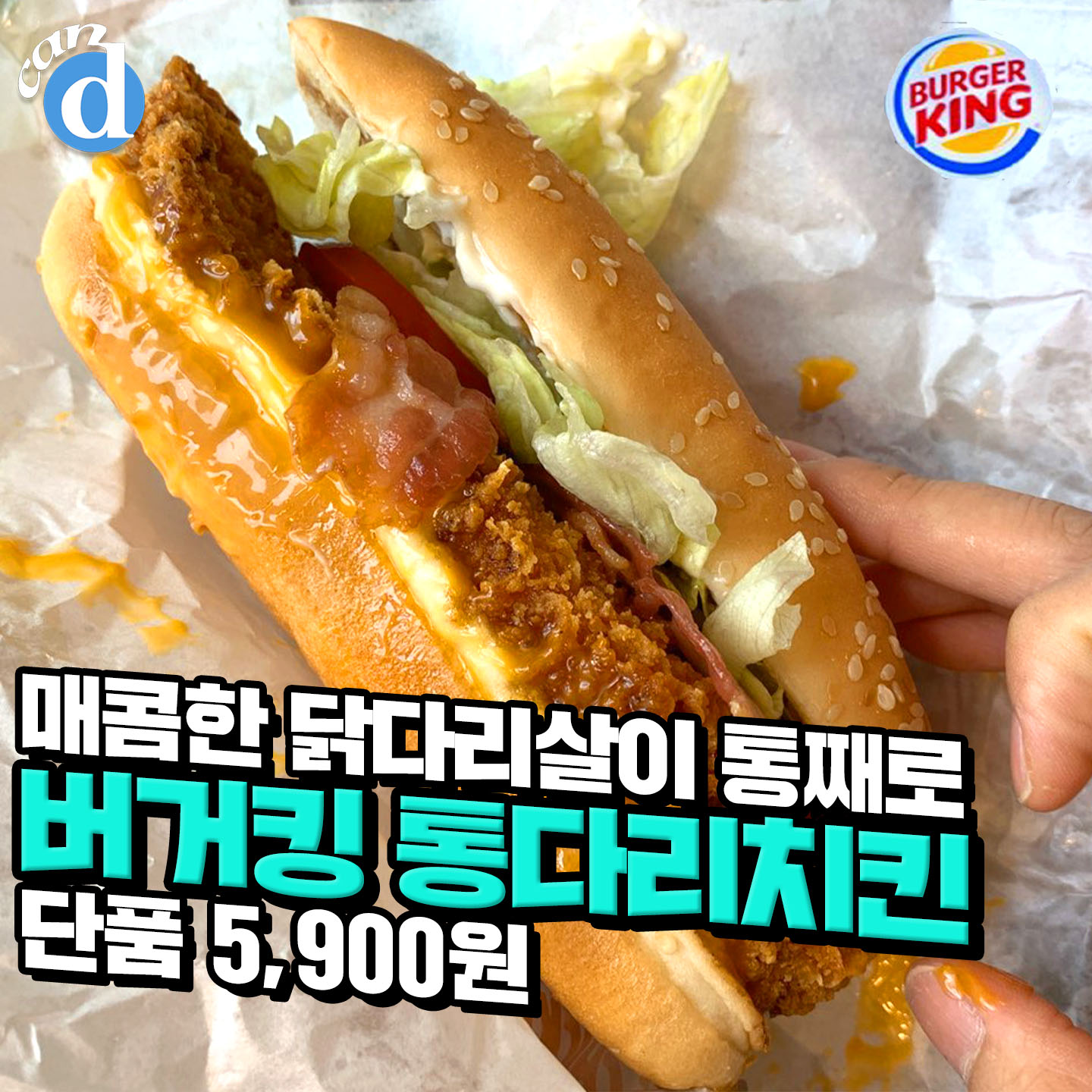 가격은 단품 기준 통다리치킨버거는 4,900원, BLT통다리치킨버거는 5,900원.