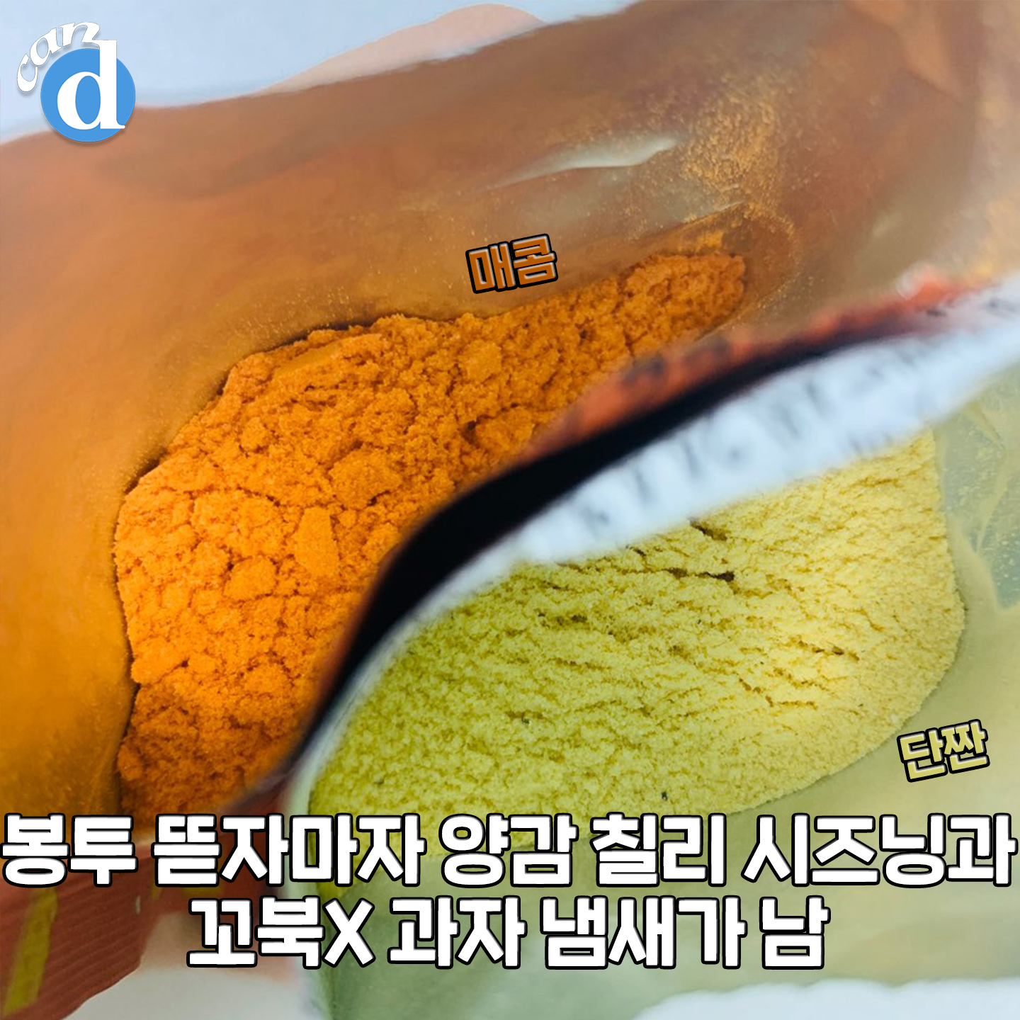 매콤치즈맛에선 롯데리아 칠리 시즈닝 향이, 콘스프맛에선 오리온 꼬북칩 향이 풍겼습니다.