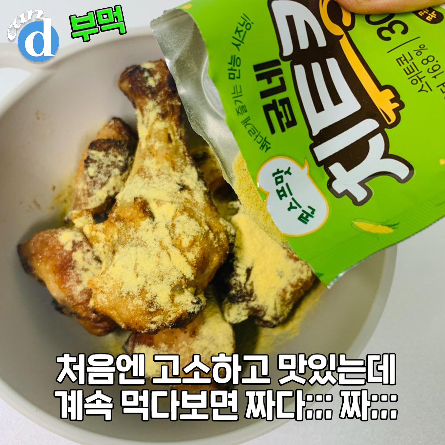 기존 치킨도 촉촉하고 담백해서 맛있는데 마약같은 콘스프 가루와 함께라니 최고입니다ㅠㅠ