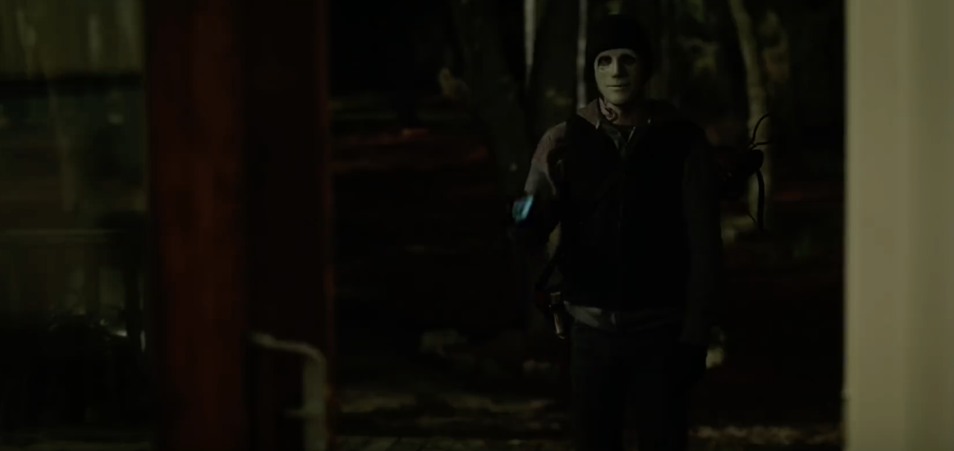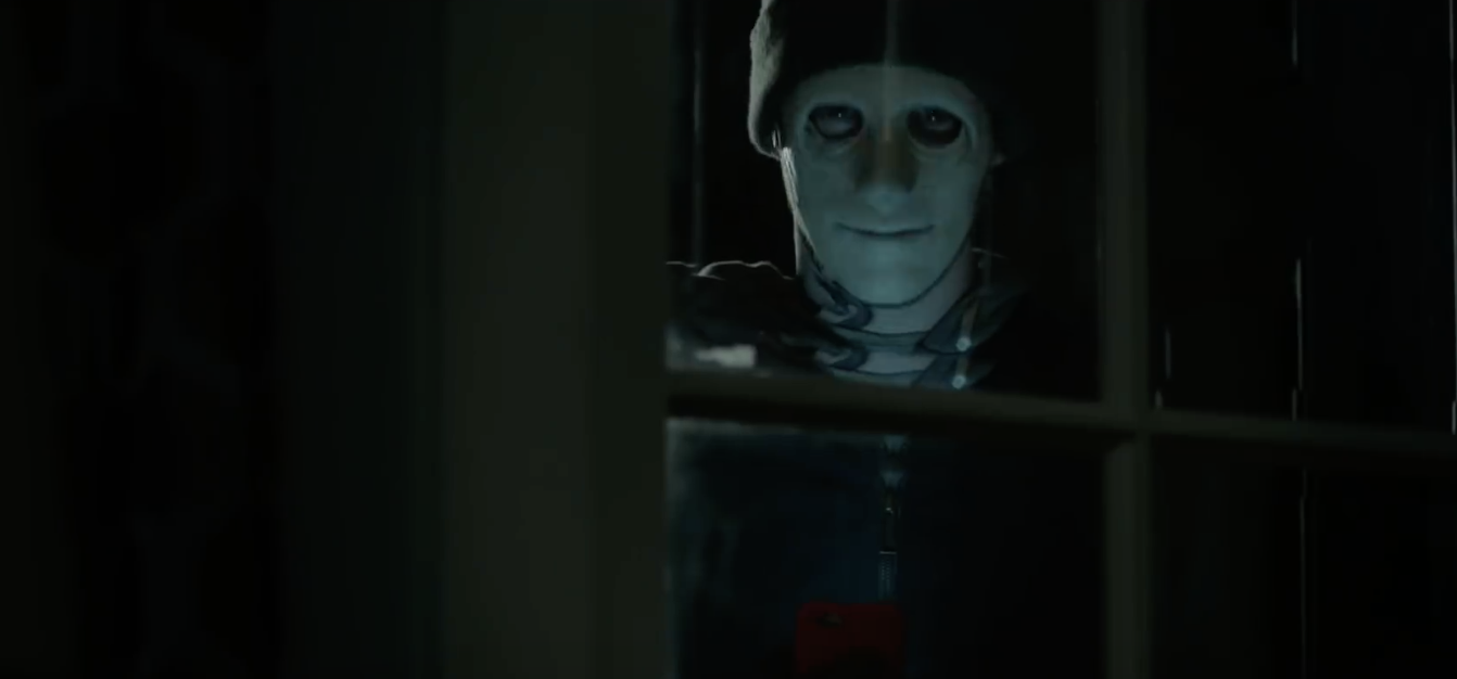 그곳엔 복면을 쓴 의문의 남자(존 갤러거 주니어 분)가 서있었습니다. 매디가 문을 닫으려는 순간 의문의 남자도 문을 향해 달려오는데요.