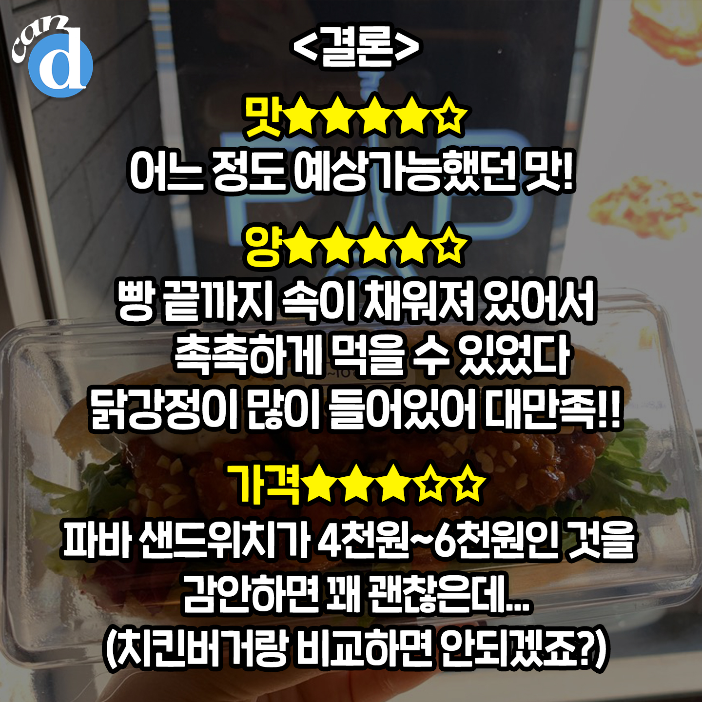 그렇게 오늘의 캔디픽이 정해졌습니다. 매콤 닭강정 샌드위치(두둥)