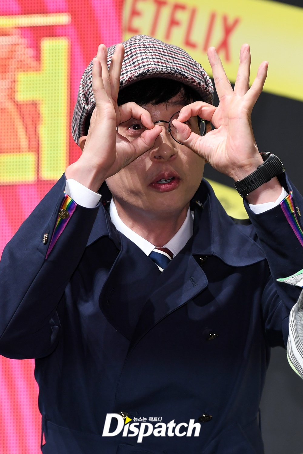 유재석은 취재진과 포토타임에서 다양한 포즈를 취하며 끼를 방출했다.