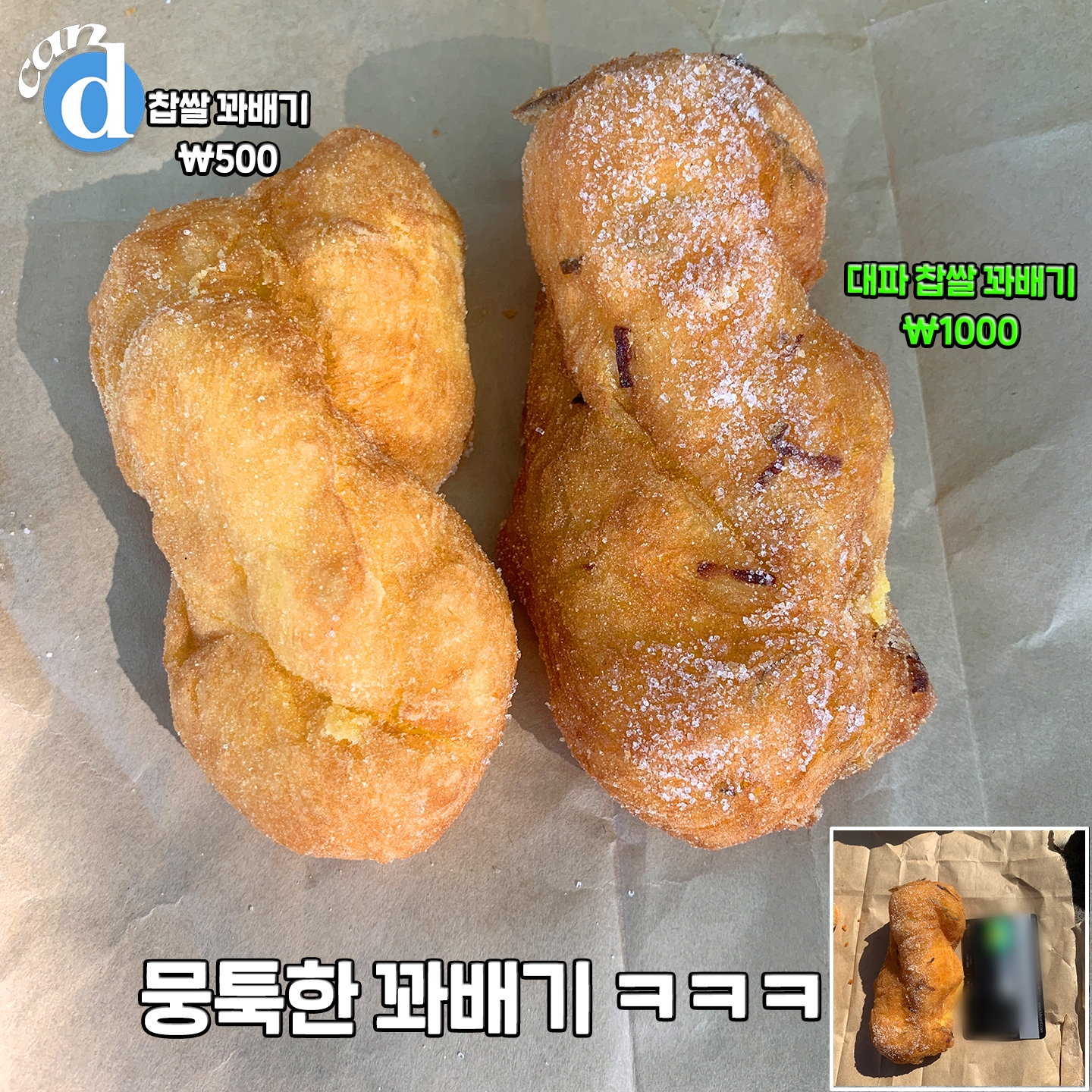 먼저 일반 찹쌀 꽈배기와 대파 찹쌀 꽈배기를 비교해볼게요.