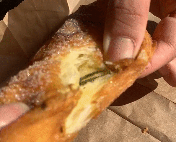또 다른 대표 메뉴 잡채고로케는 여느 빵집과 비슷한 크기입니다. 한손에 쏙 잡혀요.