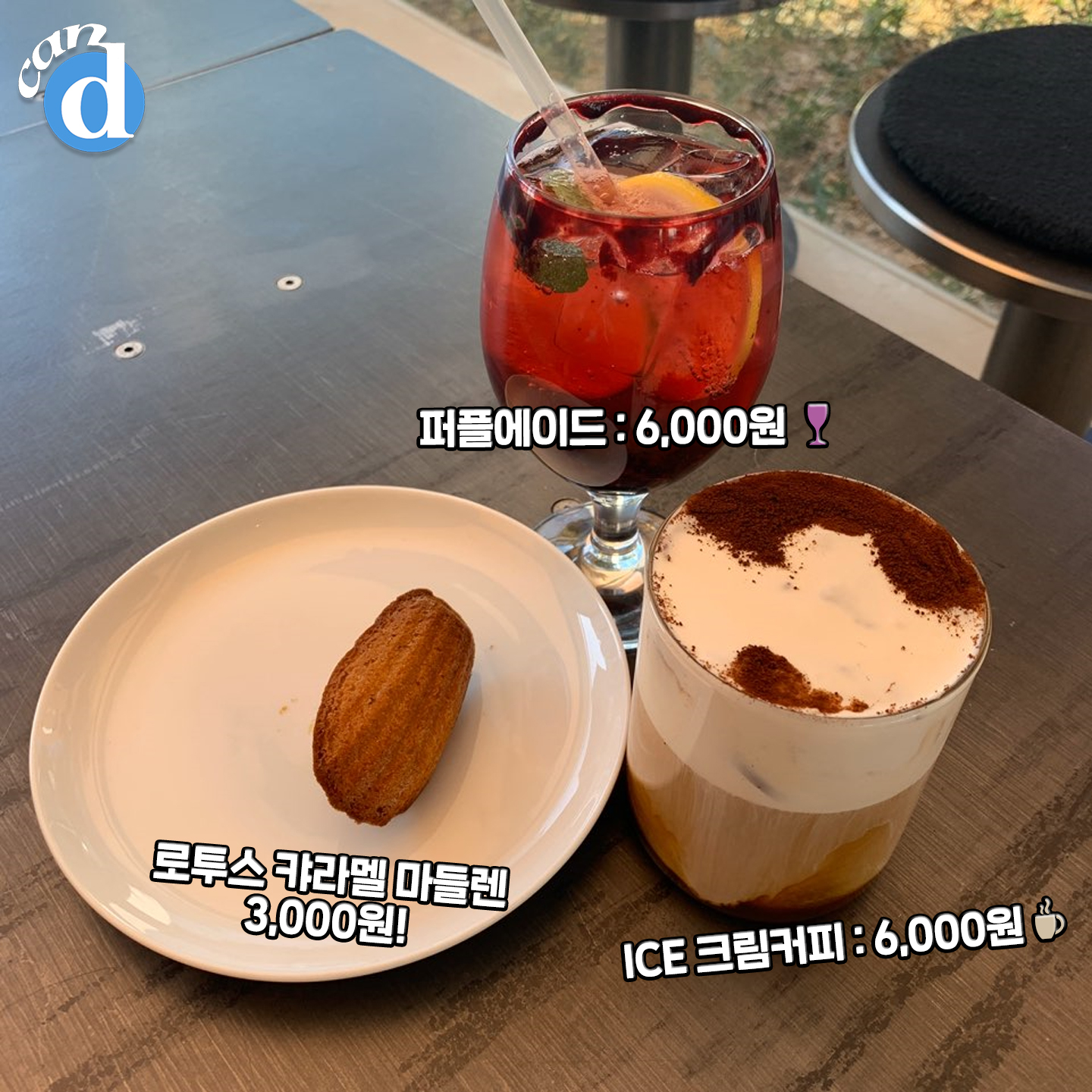 아쉬운대로 마들렌과 시그니처 메뉴 퍼플에이드와 잘 나간다는 크림 커피 주문!!!