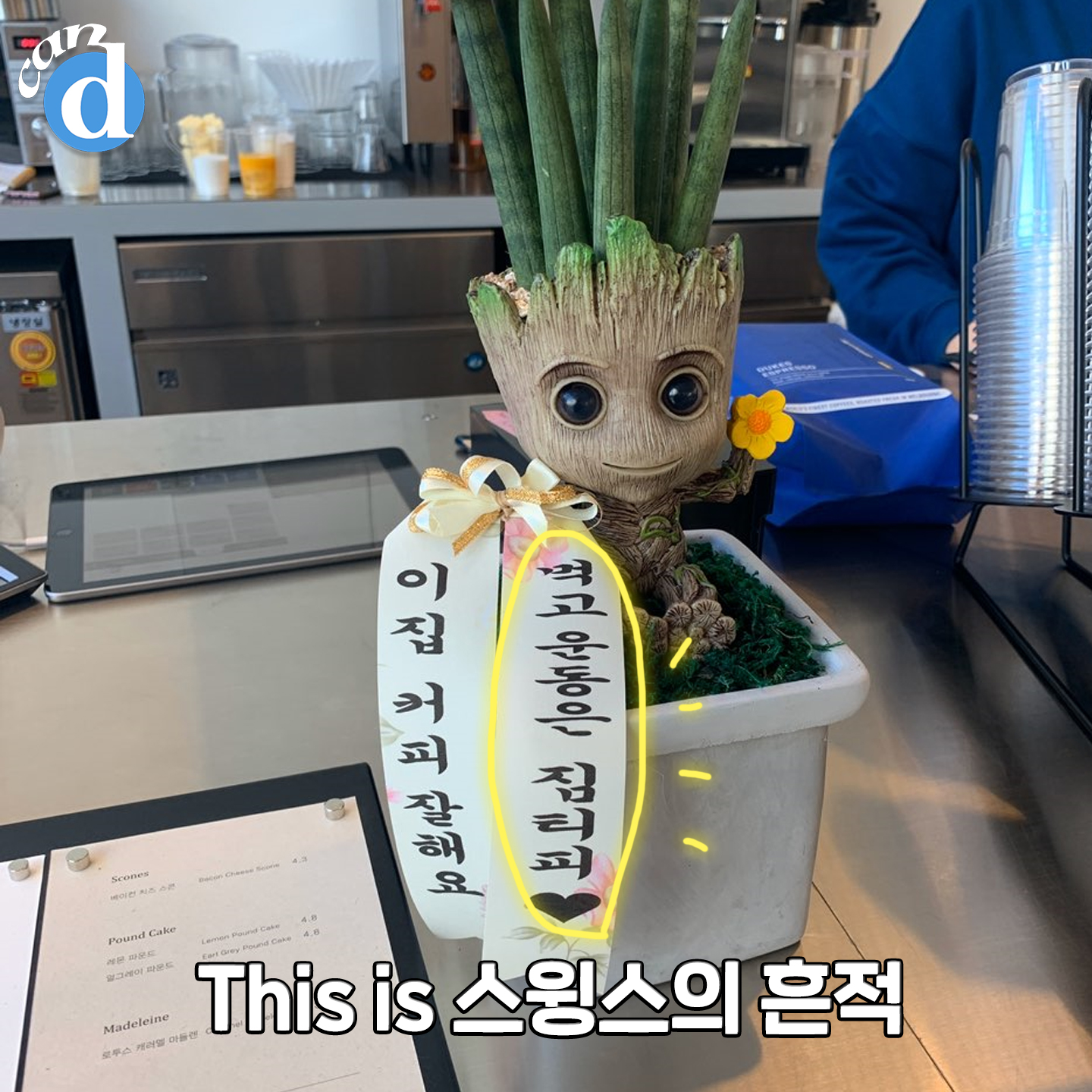 메뉴판 옆에는 스윙스의 깨알 짐피티 홍보용(?) 화환이ㅎ_ㅎ