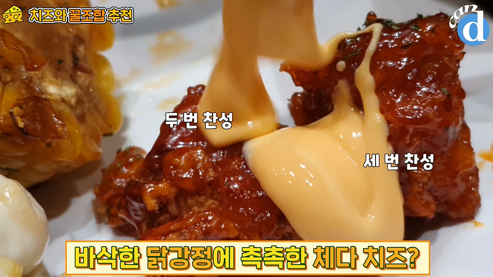 닭강정에선 양념치킨 맛이 났습니다. 체다치즈는 꼭 뿌려먹기로~