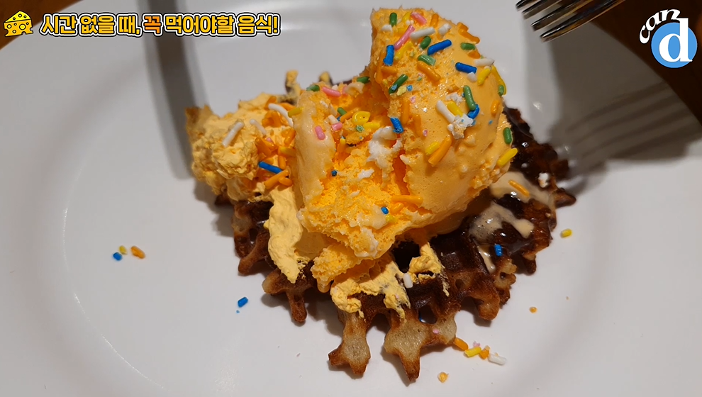 달콤고소한 체다치즈 아이스크림은 와플에 올려 먹어도, 따로 먹어도 맛있습니다.
