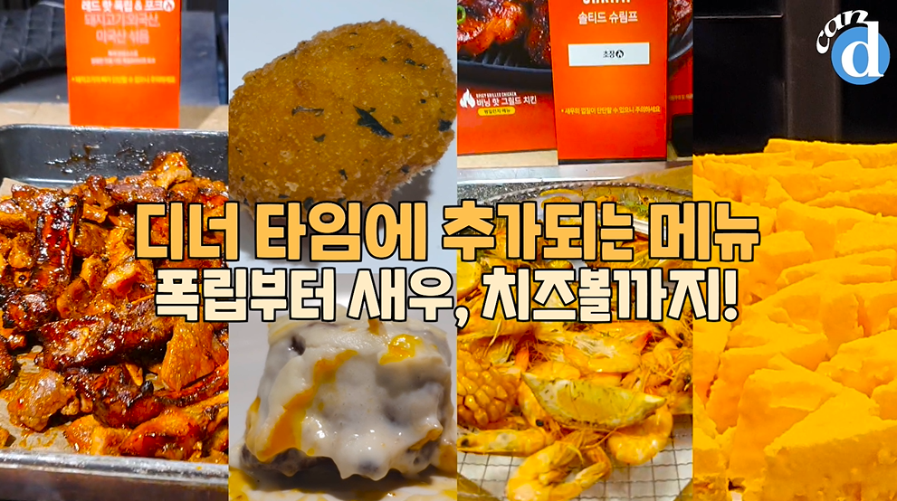 레드 핫 폭립&멜팅 치즈 트레인, 고구마 치즈볼, 크림치즈 미트볼, 솔티드 쉬림프, 만화 속 치즈케이크.