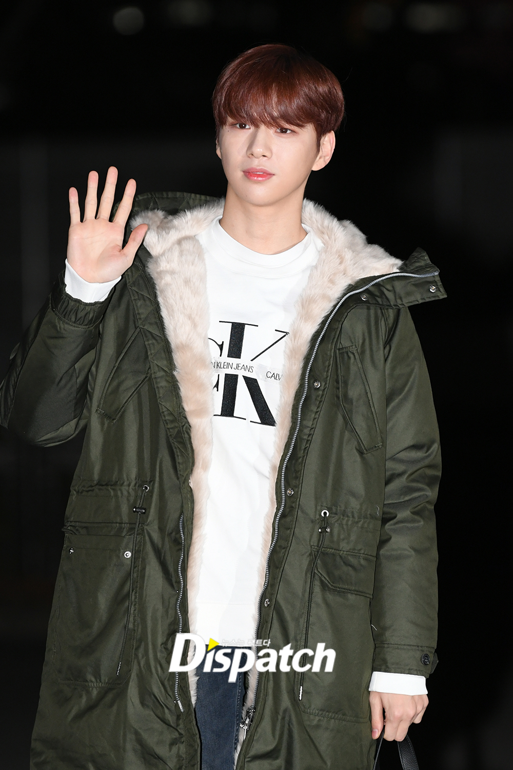 강다니엘은 환한 미소로 팬들에게 아침인사를 건넸다.