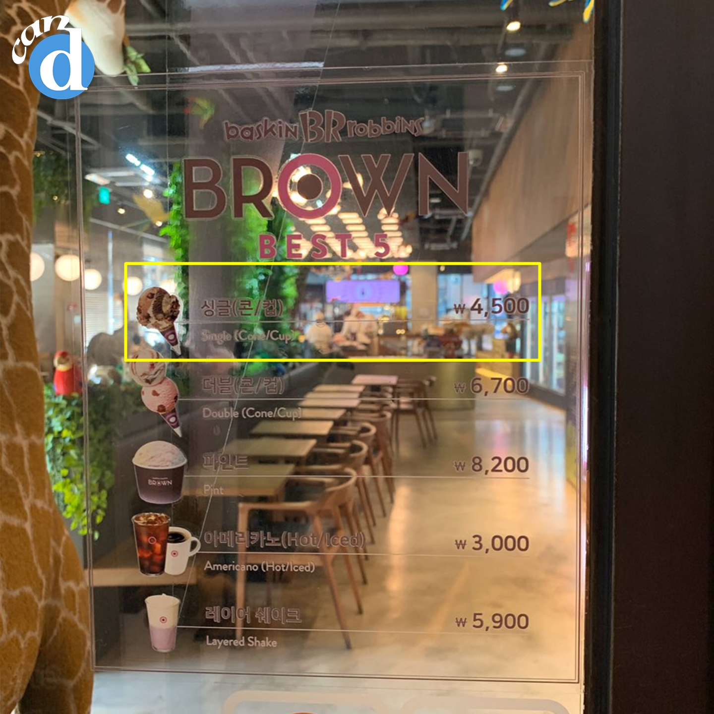 여기선 싱글(콘/컵)이 4,500원.
