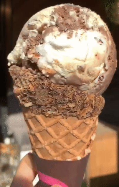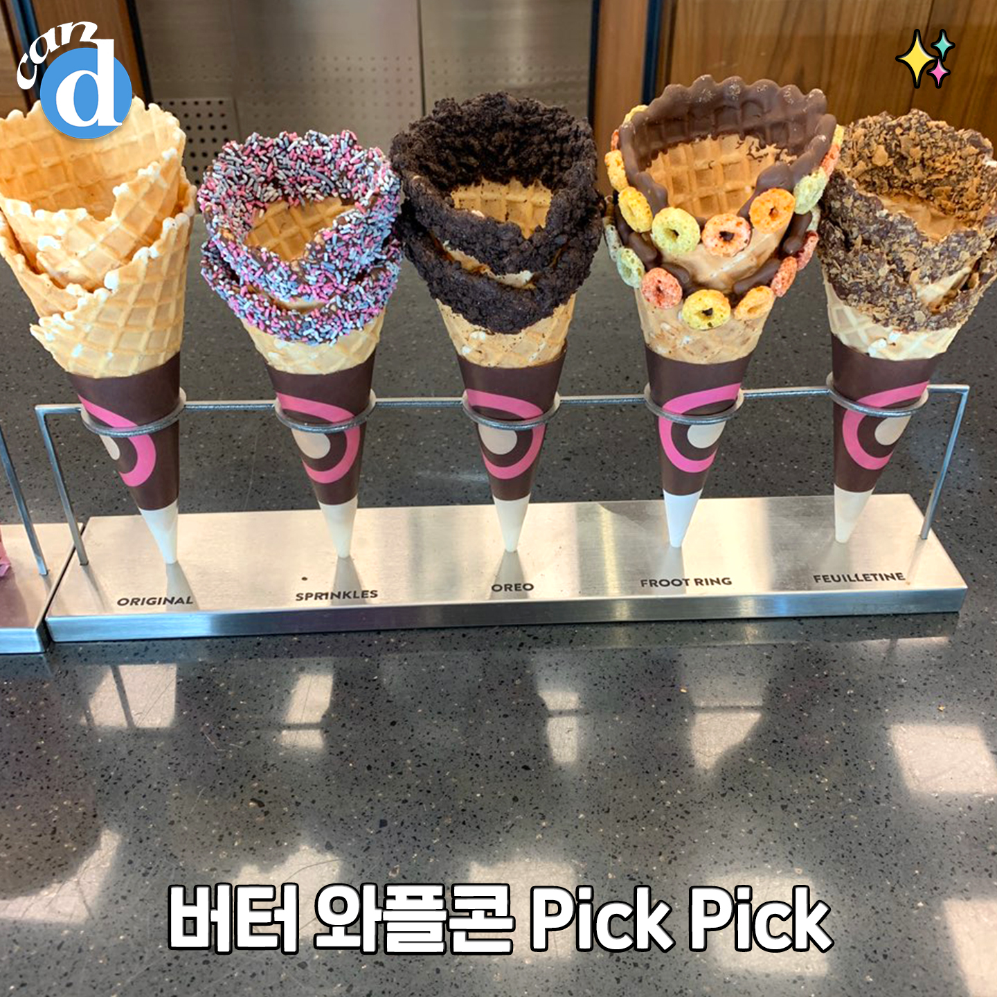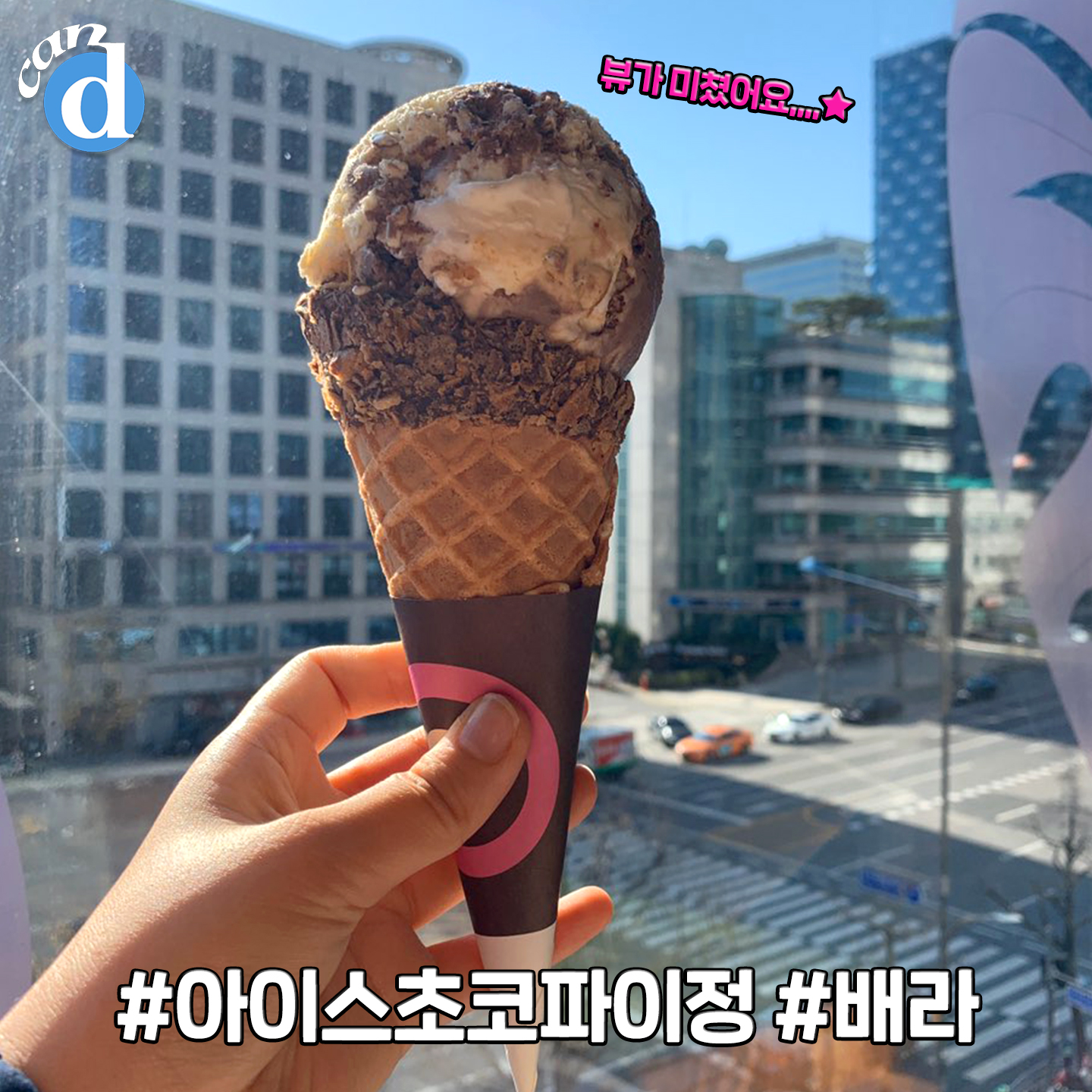 배스킨라빈스 브라운 청담점에선 일반콘 아닌 버터 와플콘에 시원한 아이스크림 한 스쿱을 얹어주는데요.