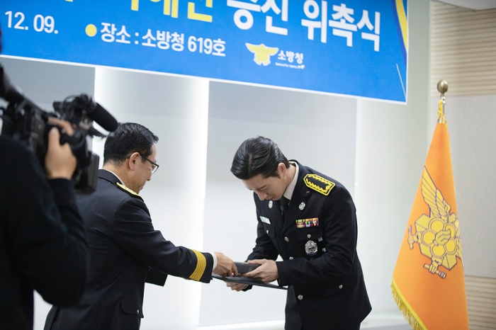 기존 소방위에서 소방경으로 1계급 특진했다. 어깨에 무궁화 2개를 달았다. 소방청은 "명예 소방관으로서 소방공무원 국가직화의 필요성을 홍보하고 안전 문화를 전파하는 데 공이 크다”고 전했다.