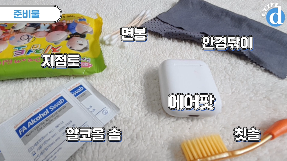 준비물 : 지점토, 면봉, 안경닦이(천), 알코올 솜, 에어팟, 칫솔