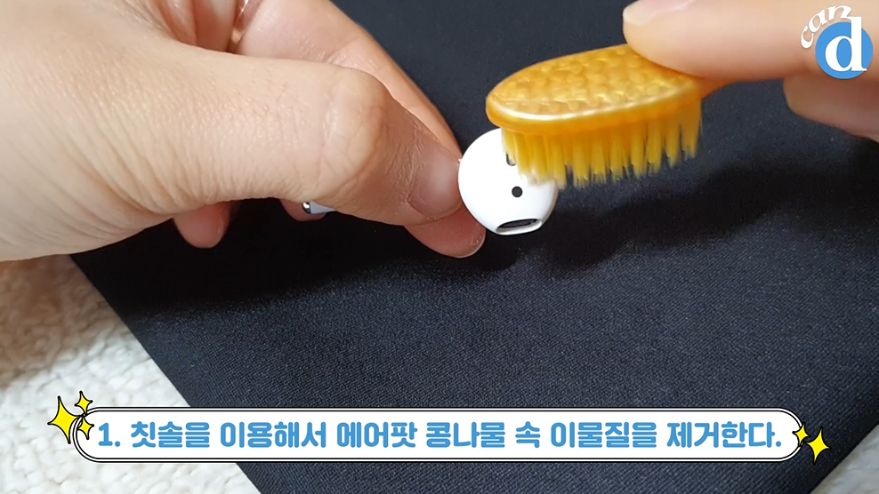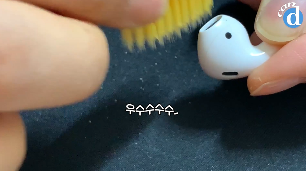 시간이 없습니다. 마른 칫솔로 얼른 에어팟 속 귓밥들을 제거합니다.