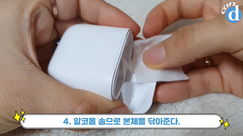 마지막 마른 천으로 본체와 에어팟을 여러 번 문질러 광을 내주세요.