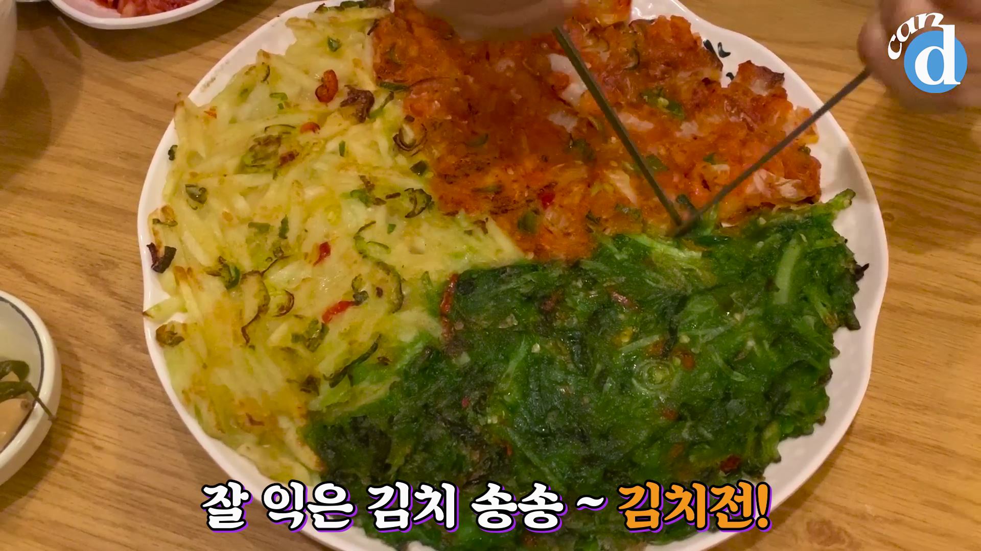마지막은 부추가 듬~뿍 든 부추전으로 깔끔하게, 고추때문에 약간 매콤할 수 있어요.