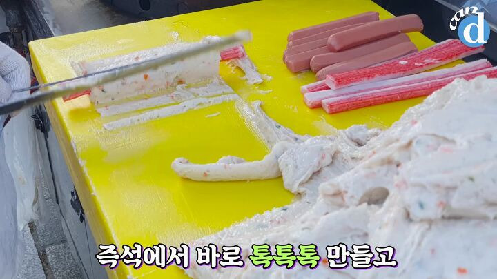 쭈우우우욱- 늘어나는 치즈 핫바, 맛살 핫바는 부드럽고 짭쪼롬했습니다.
