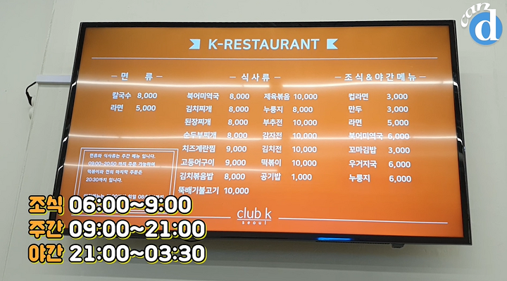 클럽 케이 식당은 조식/주간/야간으로 메뉴가 나눠집니다.