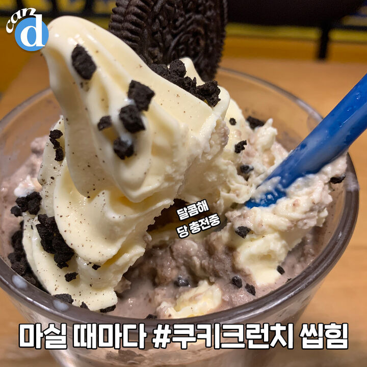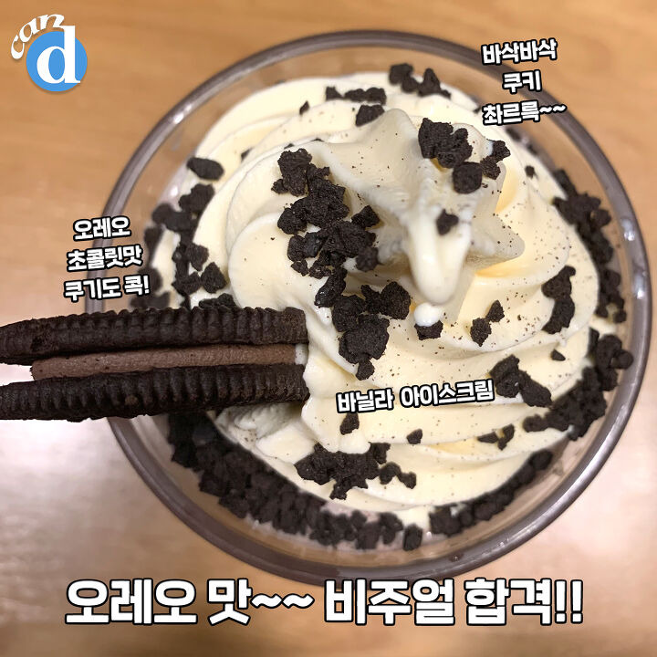 시원한 얼음 알갱이와 초코, 바닐라, 오레오 덕분에 당이 저절로 충전되는 느낌!