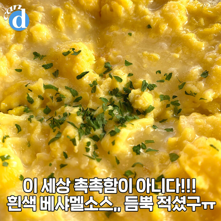 흰색 베샤멜 소스도 듬뿍 뿌려져있는데요.