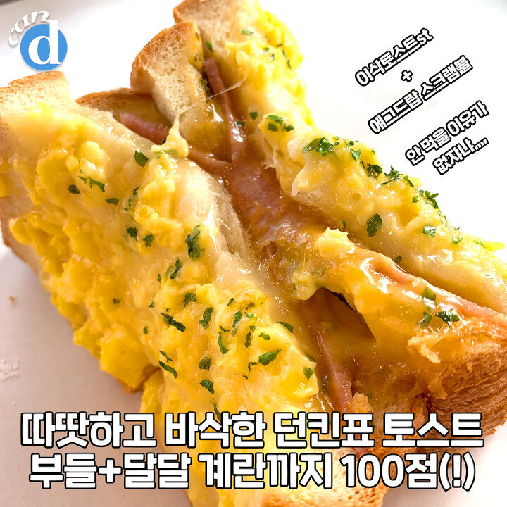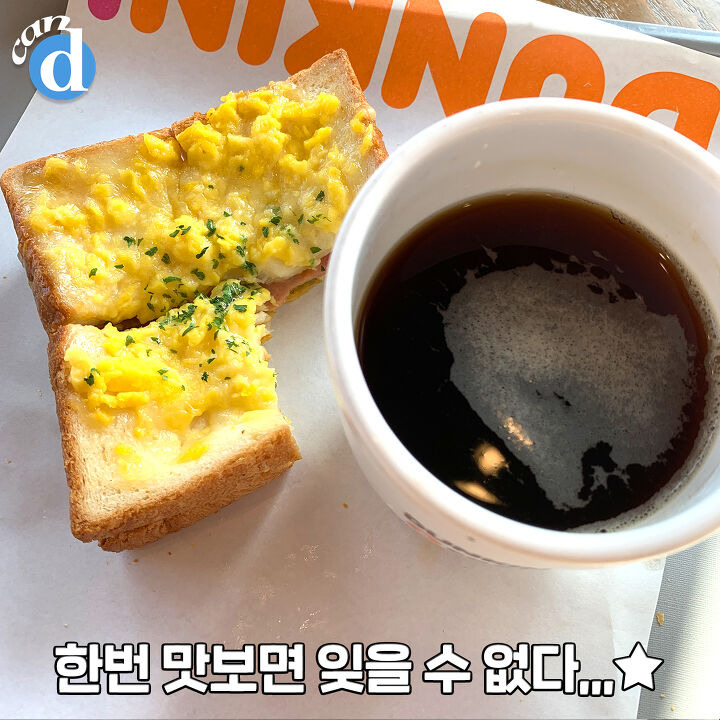 참, 던킨 스크램블 크로크무슈는 먹기 편하게 네 등분으로 나뉘어져 있습니다.