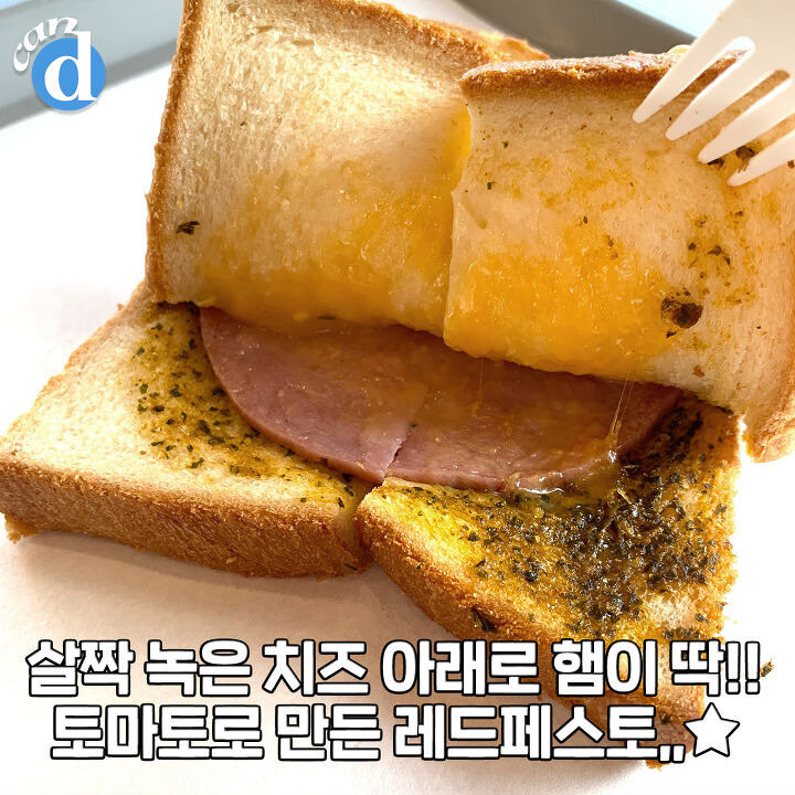 살짝 녹은 치즈 아래로 햄이 끼워져 있습니다.