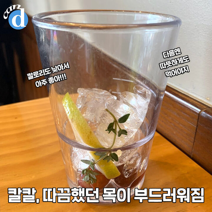 직원에게 물어보니 소량으로 레몬농축액, 배농축액, 계피액키스가 들어갔다고.