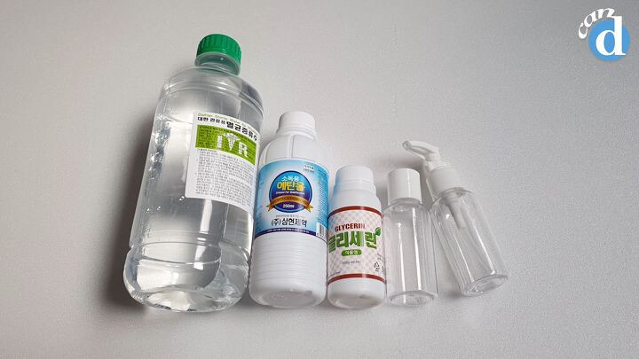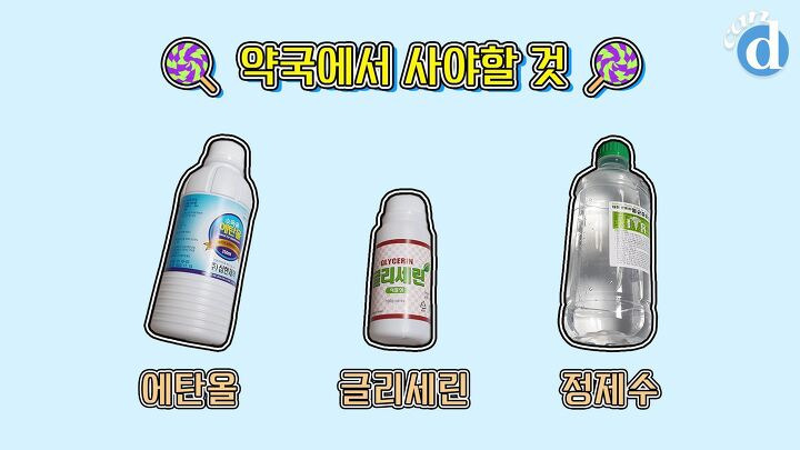 준비물은 에탄올, 글리세린, 정제수 그리고 공병.