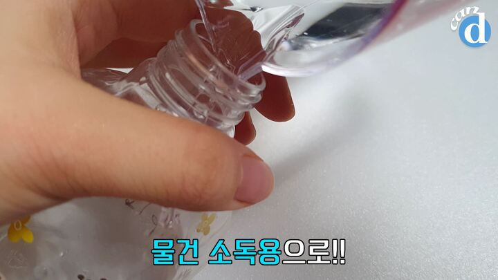 세 가지 액체를 섞어주면 손 소독제 만들기 완성!