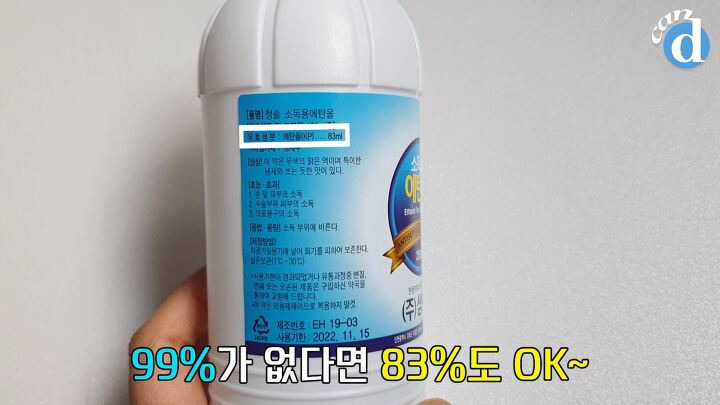 그래서 손 소독제를 만들기 위해선 꼭 넣어줘야해요.