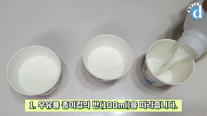 준비물 : 미떼, 종이컵, 우유(물로 대체 가능), 테이프