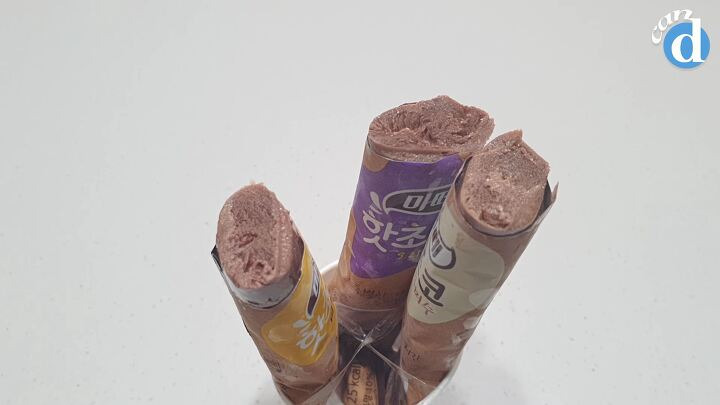 미떼 섞인 우유를 스틱에 부어주고 얼리면 끝!